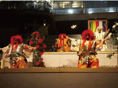 パーティーやイベントの短時間で、能の幽玄な雰囲気を味わいたい。演出として利用したいなど、イベント内容に合わせて15分〜20分程度で演目のハイライトシーンを演じます。 またピアノやJAZZといった他ジャンルとのコラボレーションによる能パフォーマンスも企画いたします。
